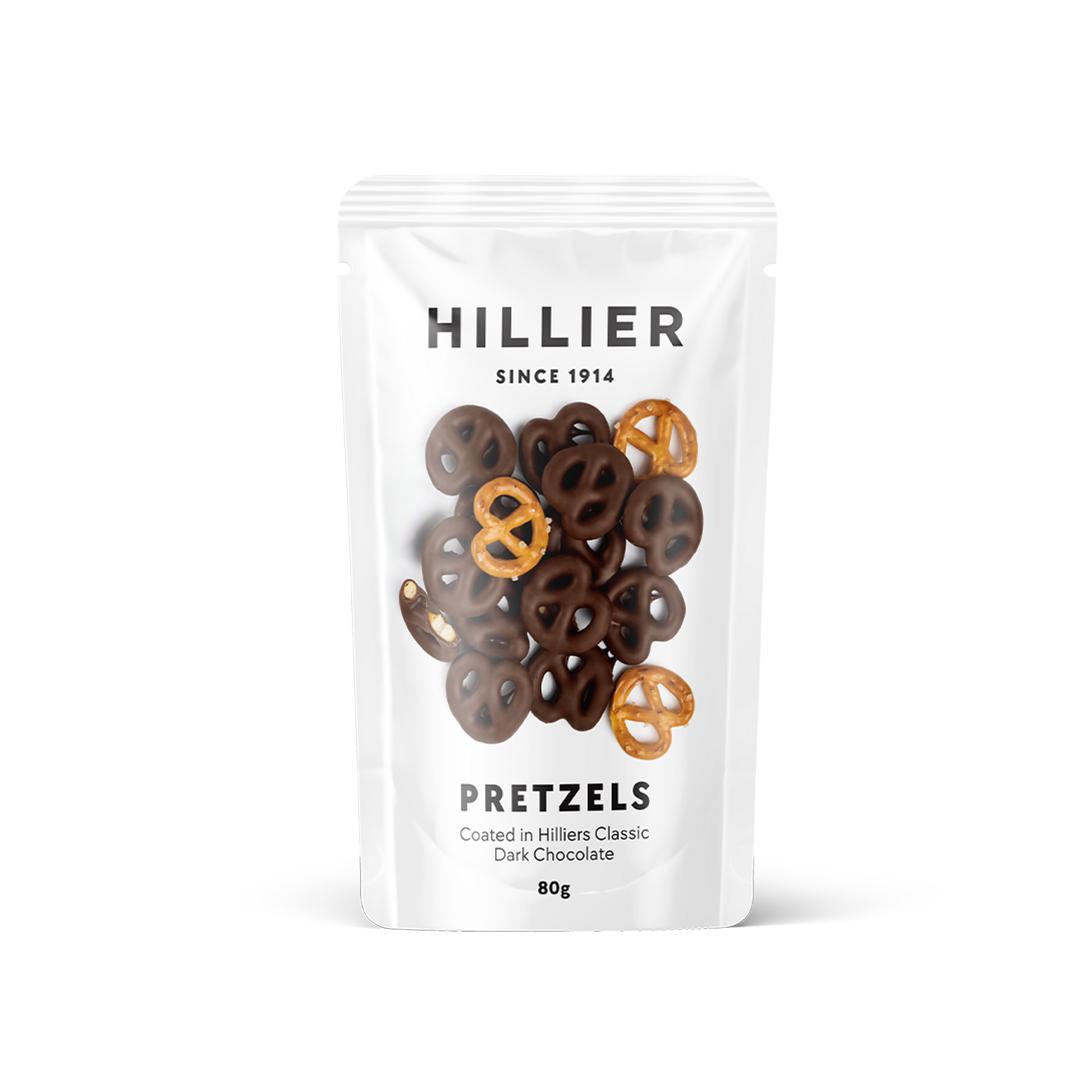Pretzels, coated in Hillier’s classic dark chocolate.