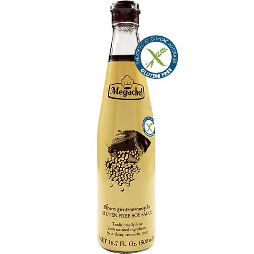 Megachef Gluten-Free Soy Sauce is non-GMO, No 3- MCPD and DPC, No MSG, No artificial colours, certified by Halal, GMP and HACCP.